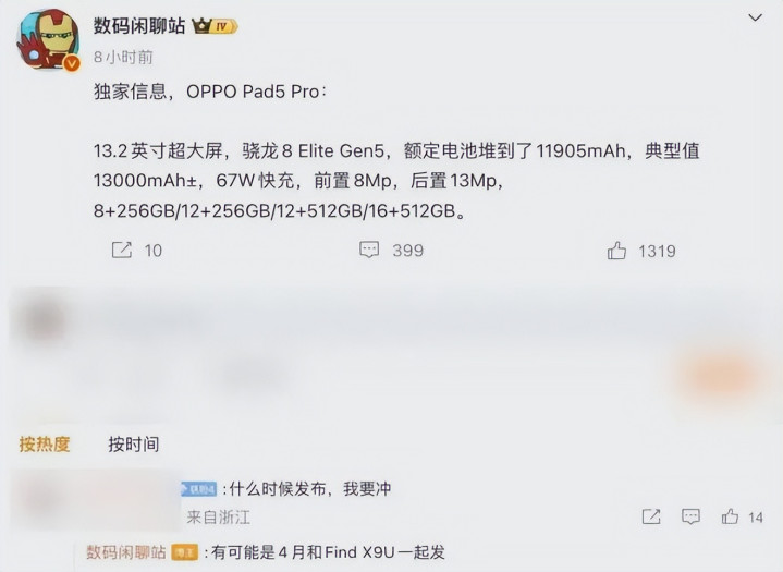 如若你合计8.8英寸不够看,OPPO还藏了一手Pad5 Pro,径直上13.2英寸超大屏。