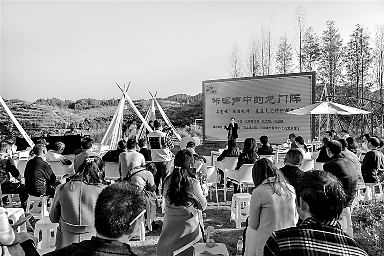 “咔嚓声中的龙门阵”——重庆市巴南区石龙镇“麻雀艺评”下层文艺评述照相赏识行为现场。冯亚宏摄/光明图片