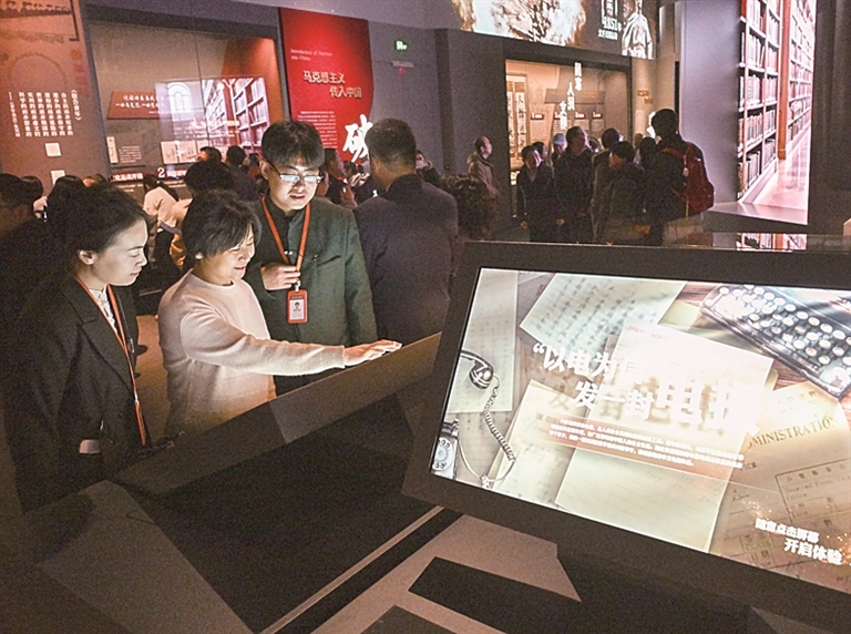 不雅众在中国考古博物馆体验交互式展览内容。新华社发