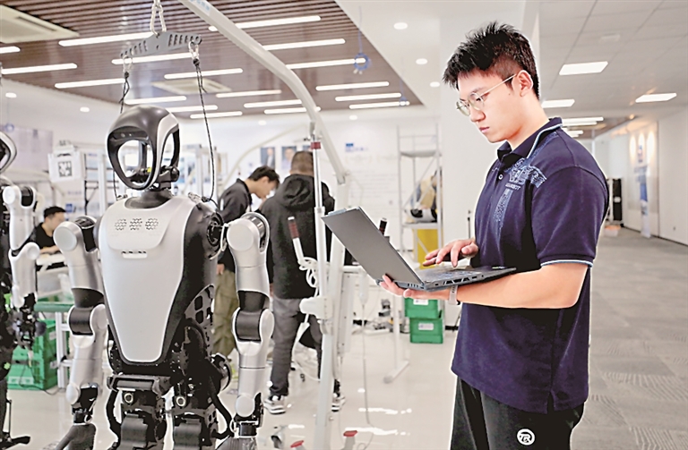 机器东说念主工程时刻东说念主员在寻查东说念主形机器东说念主的测试脱手数据。新华社发