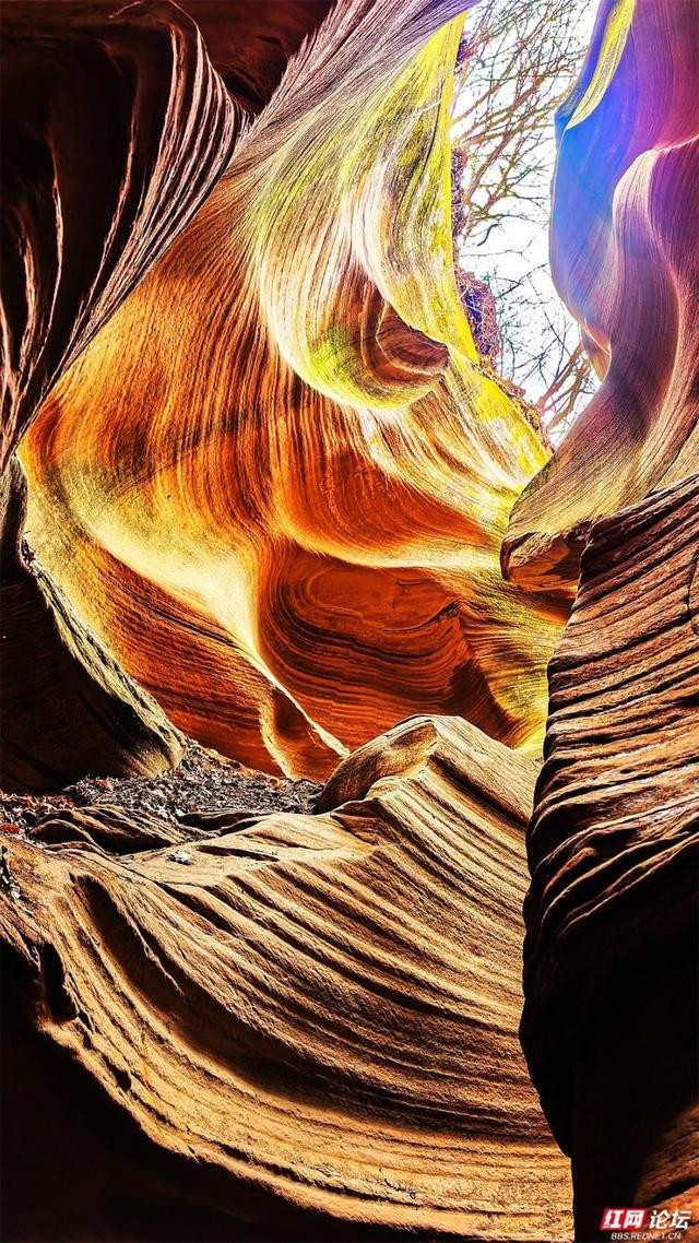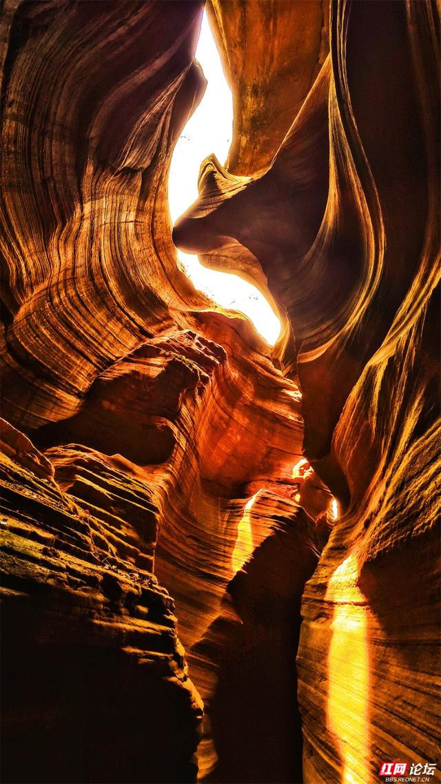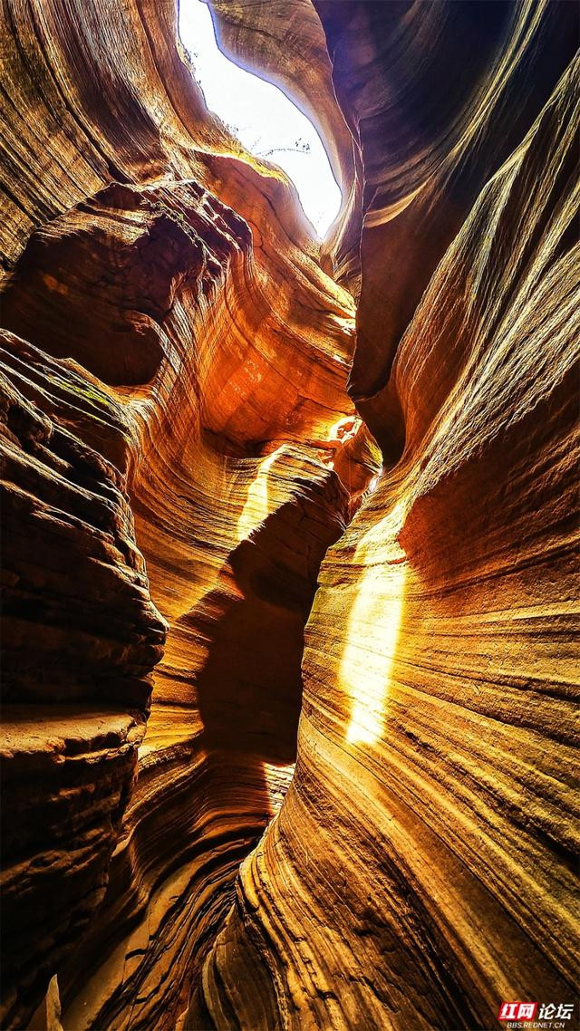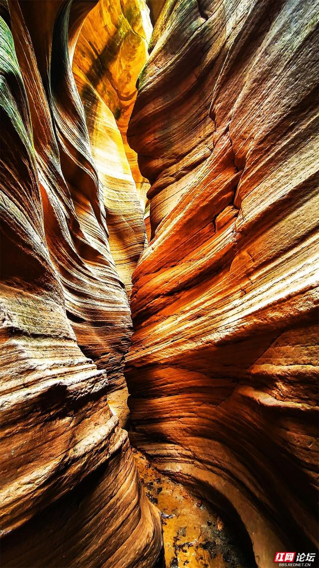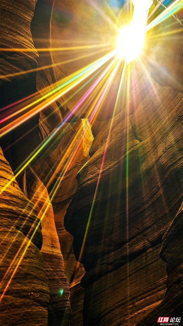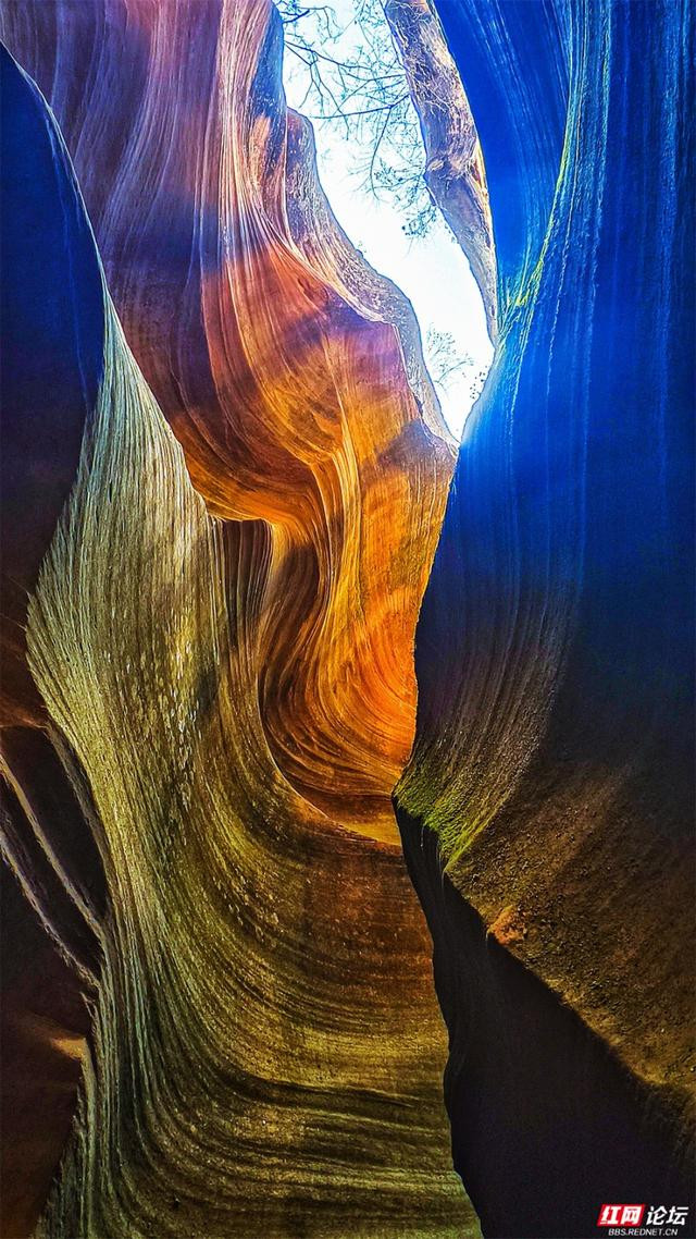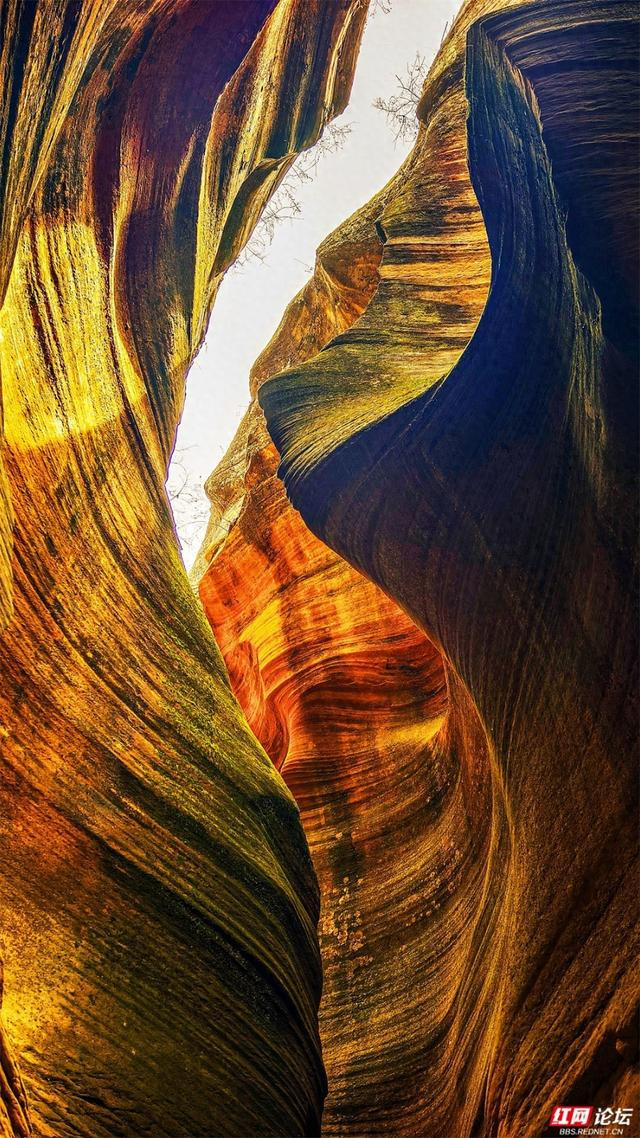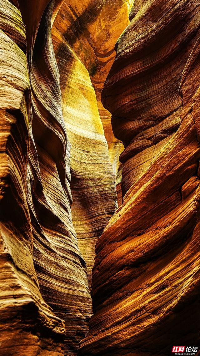 岩壁是地面伸开的画卷,橙黄、赭红、青褐层层晕染,如晚霞流淌,又如邃古的虚幻。阳光自一线苍穹散落,篮球投注app在转折的纹路上编削跃动,明与暗在此低语,硬朗的岩石竟显得祥和。