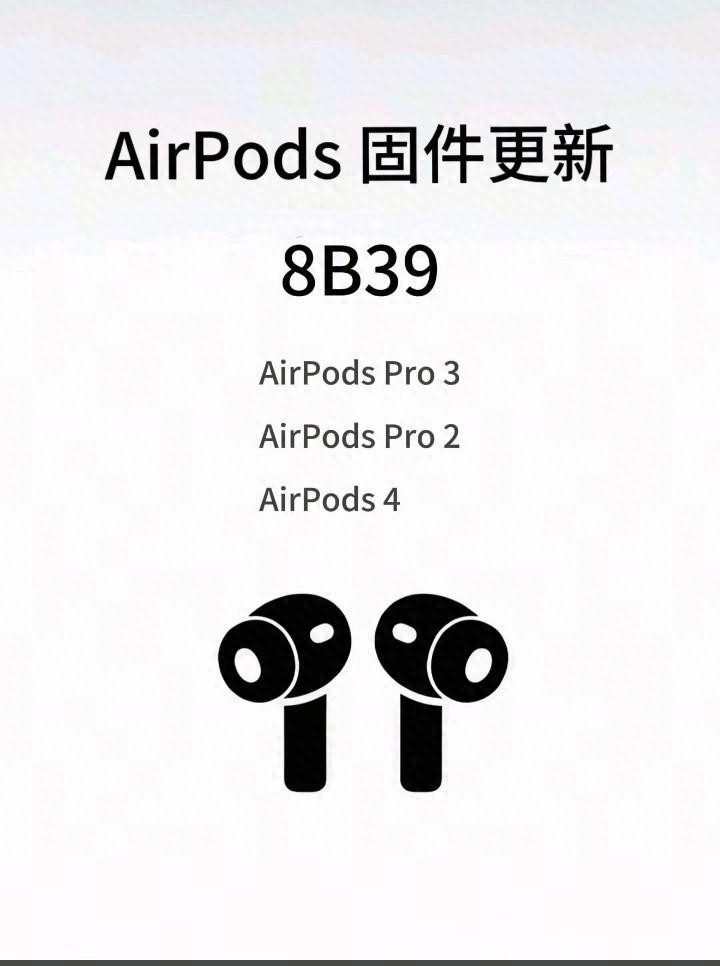 2026年3月25日苹果公司面向大家用户推送了AirPods系列耳机的全新固件版块8B39这次更新掩盖AirPods Pro 3、AirPods Pro 2以及AirPods 4三款机型标识着苹果初度将不同代际产物线纳入长入版实质系这次固件更新延续了苹果一贯的静默推送策略用户无法手动触发或停止升级经由需依赖开发与苹果生态的自动适配机制完成版块迭代